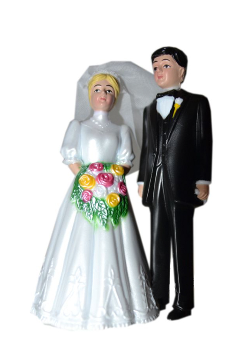Ett brudpar som m&:auml:ter 11,5 cm, tillverkade av plast.Perfekt dekoration till br&:ouml:llopst&:aring:rtan.