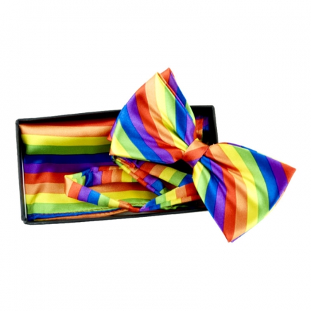 Läcker pridefluga och snusnäsduk i regnbågens färg…