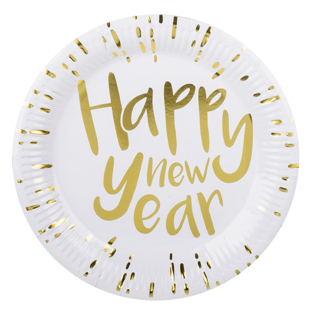 Papperstallrikar är ett måste för en lyckad nyårsfest. Här hittar du 23 cm stora papperstallrikar i vitt med guldig text på. Kombinera med övrig nyårsdukning!Papperstallrikarna levereras i 6-pack.&hellip: